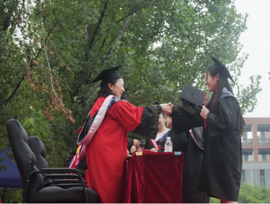毕业典礼至此圆满结束。随后以学院为单位,各分会场进行了学士学位授予仪式,毕业生们身着长袍,依次登台,学院领导为获得学位的毕业生拨穗正冠并合影留念。