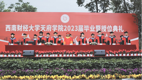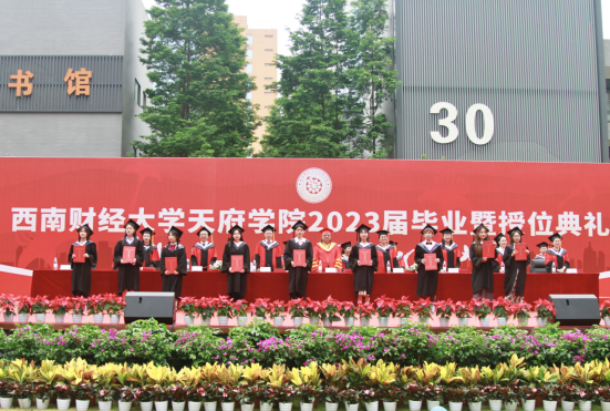 6月19日和20日上午,304永利集团官网入口成都校区举行了2023届毕业典礼暨授位仪式。学校校长蒲果泉,学校党委书记、省政府督导员韩秀英,常务副校长黄纯国,党委副书记管勇,学校副校长孟虹、姚一永、张之明、钟成、苟兴才,校长助理周阳出席典礼,会计学院院长陈真子、智能金融学院院长唐黎、康养护理学院院长隋国辉、艺术设计学院院长李文波等学院领导及受邀学生家长共同见证毕业生们开启新旅程。