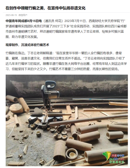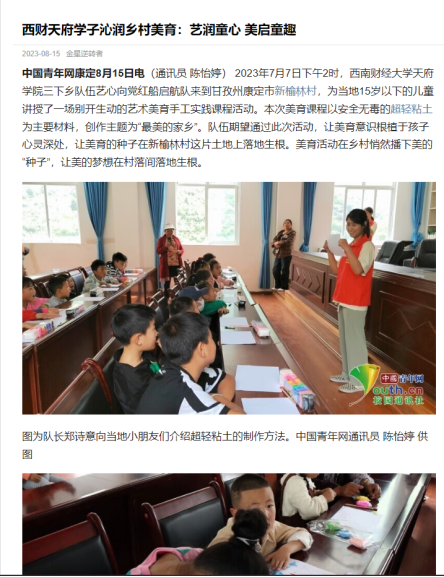 《成都学子三下乡:扎根乡土深处,逐梦乡村振兴》《天府青年心系塘湾,助学留守儿童》《天府筑梦,用爱让乡村儿童快乐成长》《在创作中领略竹编之美,在宣传中弘扬非遗文化》《守护童心伴成长,志愿服务助乡村》《304永利集团官网入口:敬老精神,薪火相传》等多篇稿件被多家媒体转发报道。掌上青神、射洪共青团、文明北川、合江新闻等实践团队所在地的地方媒体平台也对志愿者的实践事迹进行报道。