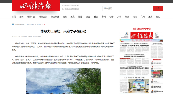 此次“三下乡”活动反响热烈,得到中华网、中国网、中国日报、中国青年网、四川卫视、四川文明网、四川学联、直播绵阳、南充日报、眉山日报、凉山日报等多家主流媒体宣传报道90余篇。