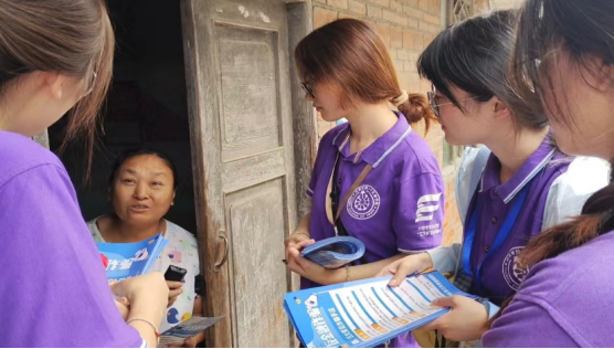 “走进乡村,金融护航”实践队为村民发放“防诈骗”传单