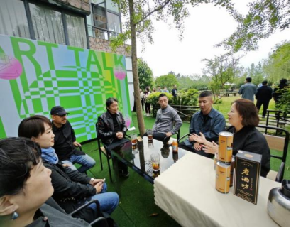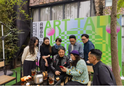 4月9日下午,304永利集团官网入口艺术与传媒学院的教师代表和成都蓝顶艺术区的艺术家们在蓝顶·荷塘月色艺术会所举办了题为“荷塘春色,赏春谈艺”的艺术交流活动。