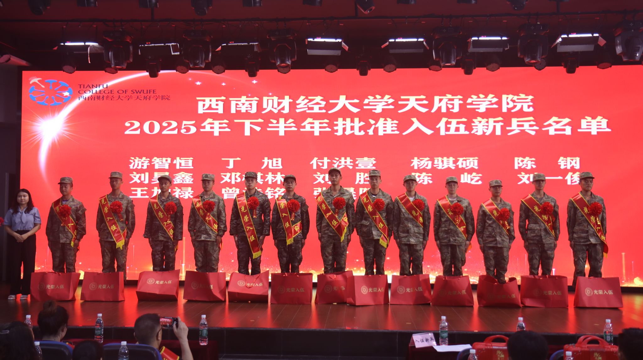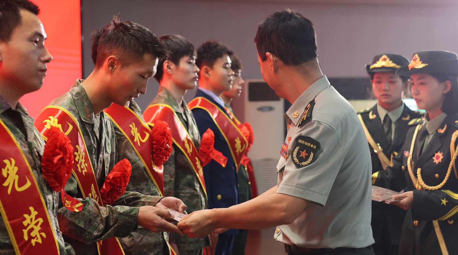 在热烈的掌声中,赵坤为退役士兵代表颁发“光荣之家”荣誉牌匾,以表彰他们为国防事业作出的贡献。新兵们庄严宣誓,表达了忠于祖国、献身使命的坚定决心。学校征兵工作站站长詹丽梅为新兵赠送入伍纪念品,寄托了学校的祝福与期望。