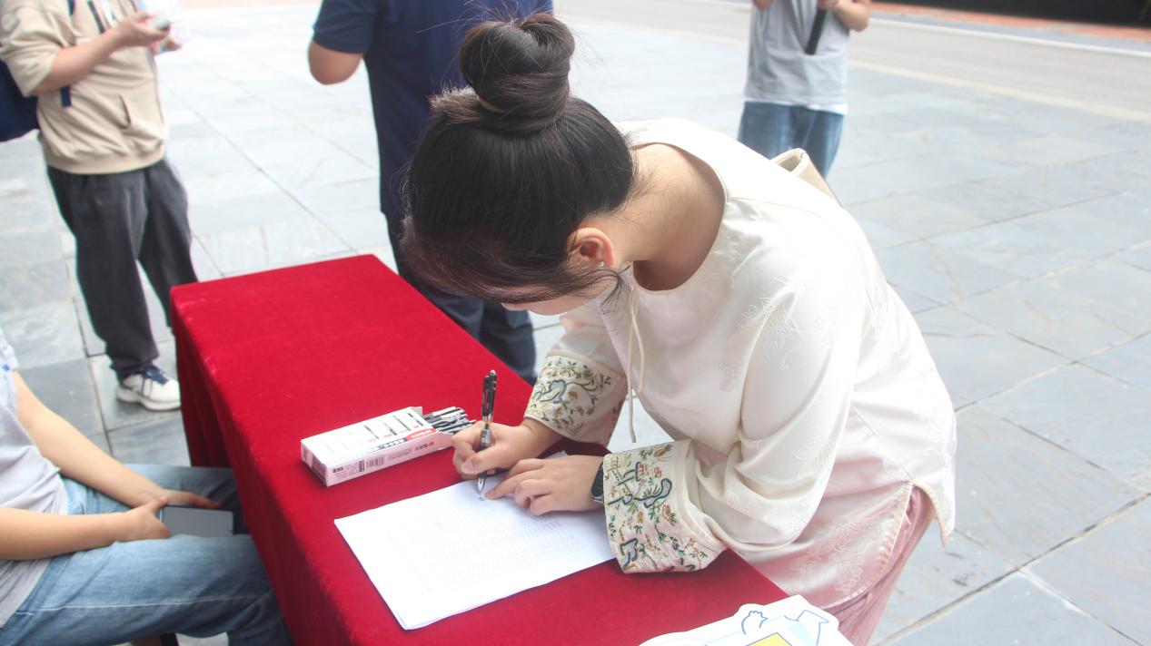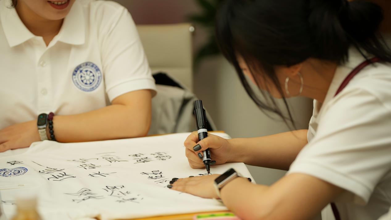 会议尾声时,校友们还纷纷拿起笔,在特别定制的纪念衫上郑重地签下自己的名字,一笔一划间流露出对母校的眷恋之情。这些签名不仅是个人的留念,更是校友与母校之间情感连接的见证,为这次难忘的聚会增添了更多温馨的回忆。