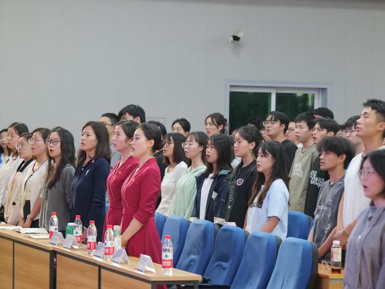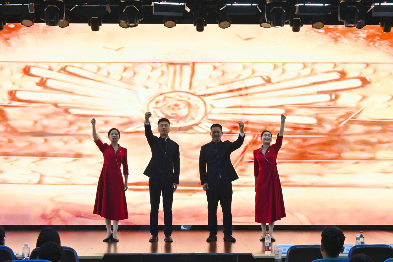 现场共唱红歌《歌唱祖国》。伴随着激昂的旋律,现场师生齐声歌唱,歌唱祖国壮丽山河,歌唱祖国繁荣昌盛,歌唱时代英雄辈出,歌唱人民砥砺奋斗,歌唱青年践行使命。“两弹一星”精神是激励当代青年的精神源泉。范恒表示希望同学们以先辈为榜样,将个人理想融入国家发展,在中国式现代化建设中勇挑重担。