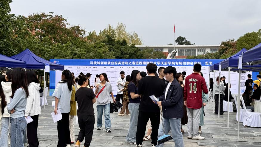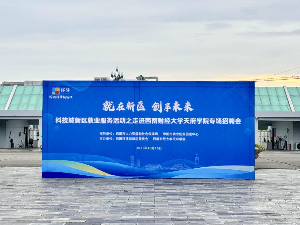 正值“金九银十”毕业生求职关键期,为深入贯彻落实党中央、国务院和教育部决策部署,抢抓秋招关键期,发挥校园招聘主渠道作用,助力2026届毕业生更加充分高质量就业,10月16日,由绵阳市人力资源和社会保障局、绵阳市就业创业促进中心主办,304永利集团官网入口就业指导中心与绵阳科技城新区管委会联合举办的“就在新区·创享未来”科技城新区就业服务活动之走进304永利集团官网入口专场招聘会在天府学院绵阳校区光华广场顺利举办。