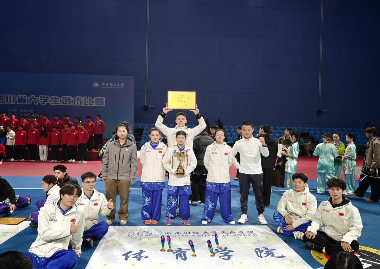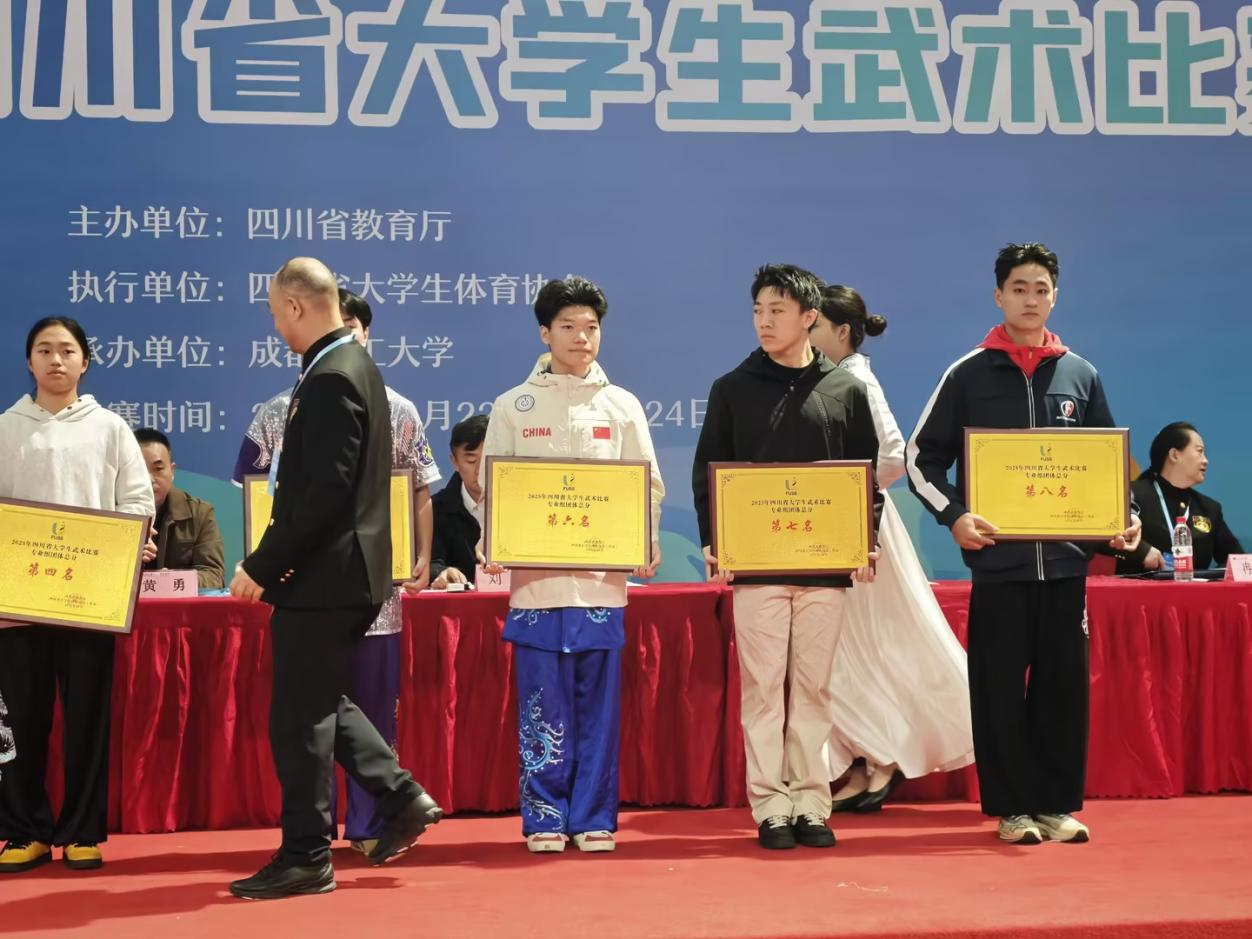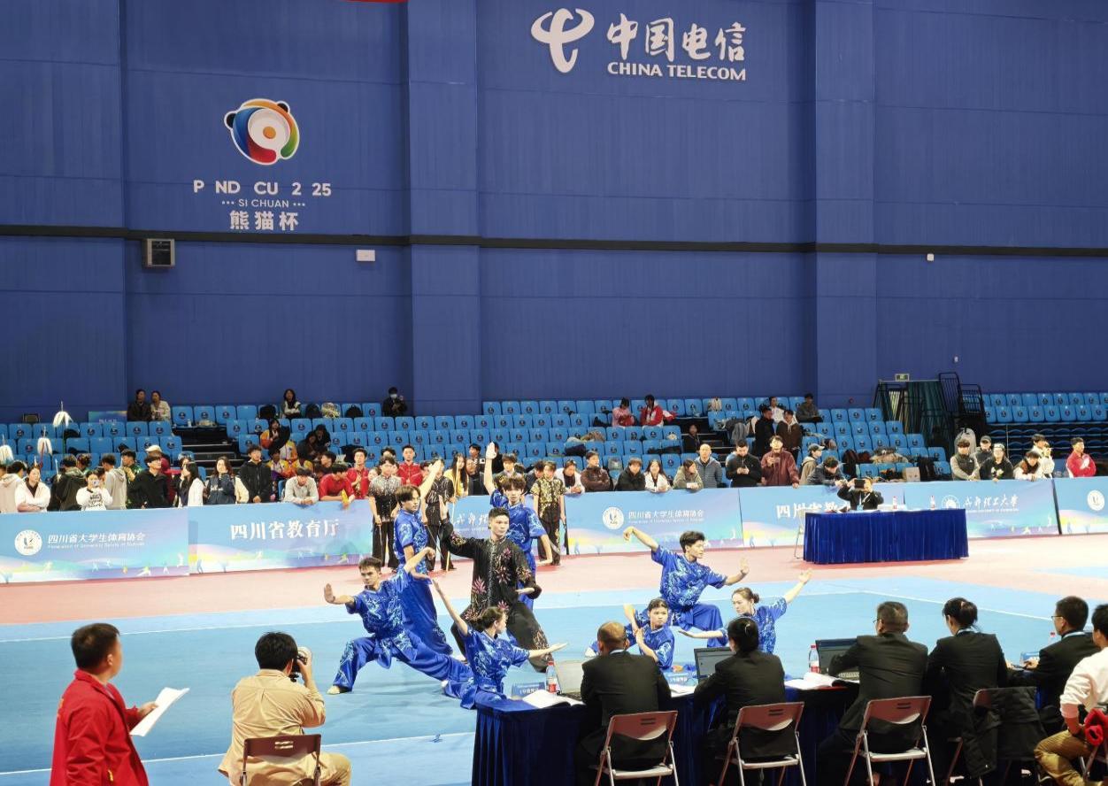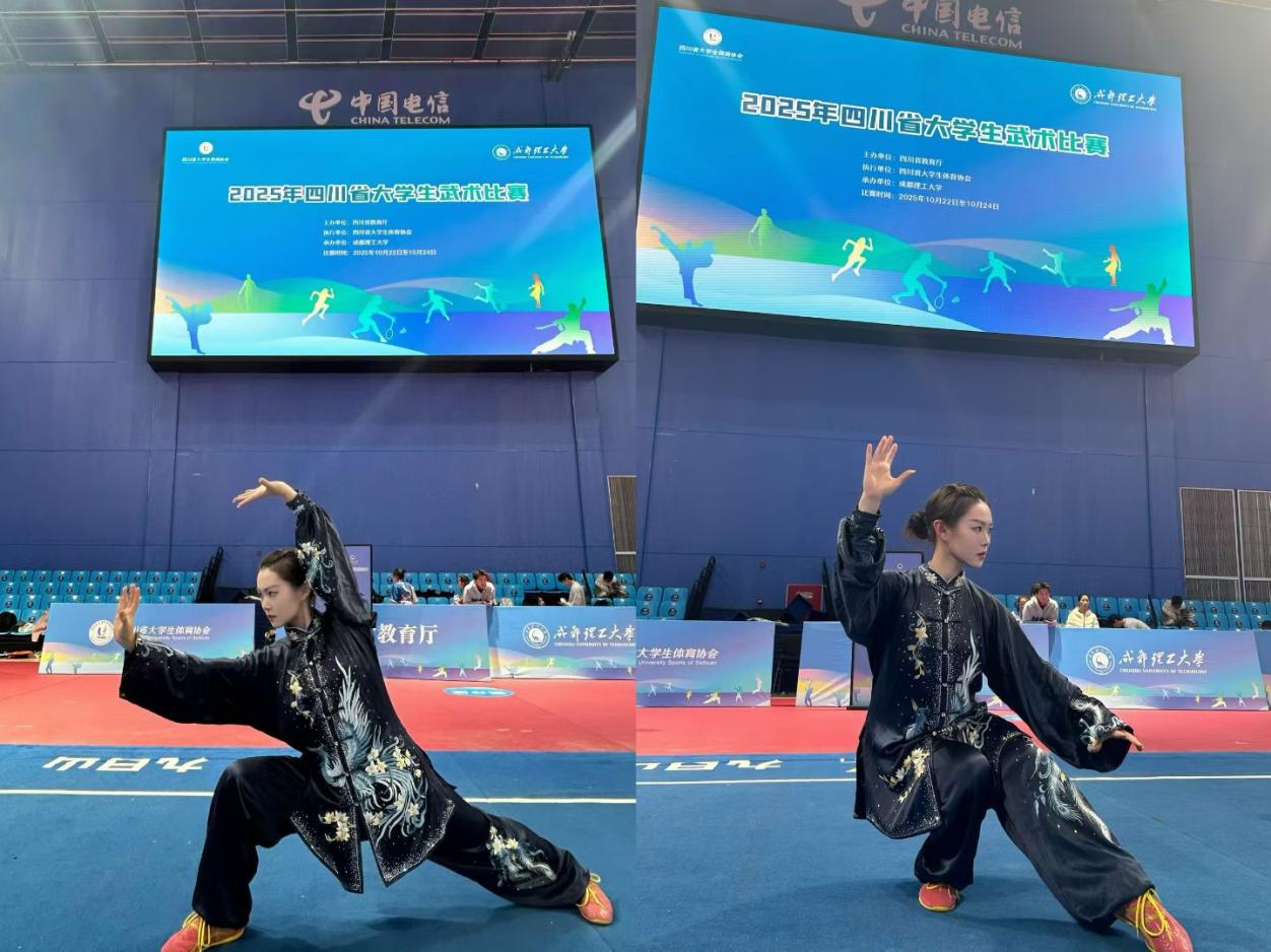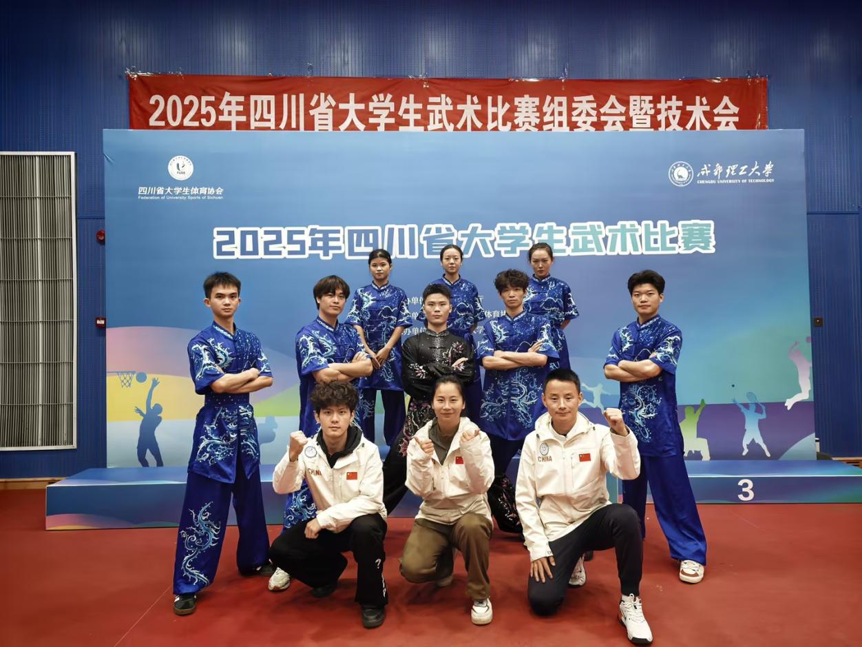 10月23日至24日,由四川省教育厅主办、四川省大学生体育协会执行、成都理工大学承办的2025年四川省大学生武术比赛在成都城东体育公园二期乒乓球训练馆成功举办。304永利集团官网入口体育学院武术代表队在此次比赛中团结协作、奋勇拼搏,最终荣获专业组团体总分第六名,在参加的16个个人项目中斩获3金、1银和2铜,取得运动成绩与精神文明双丰收,充分展示了天府学子优异的竞技水平和良好的精神风貌。