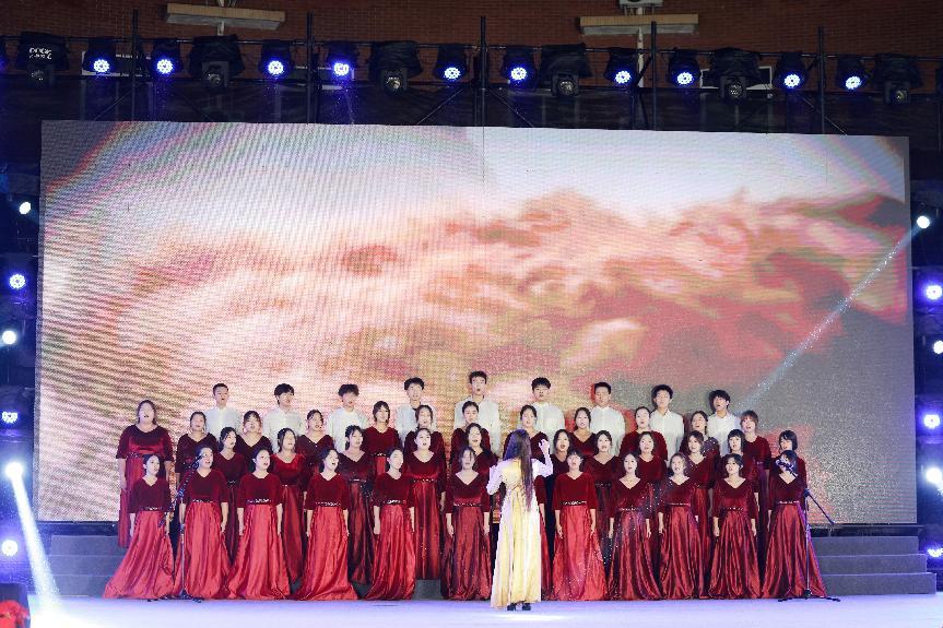 最后,校大学生艺术团合唱组带来的《保卫黄河》以恢弘气势将现场氛围推向最高潮。旋律响起,激昂雄壮的歌声穿透全场,伴随着有力的节奏,合唱团团员挥动手臂、神情坚毅,歌声中饱含对祖国河山的挚爱,更传递出中华儿女不屈不挠的抗争精神。现场观众深受感染,掌声雷动、气氛热烈,爱国情怀在歌声中传递,红色基因在青春一代心中扎根。