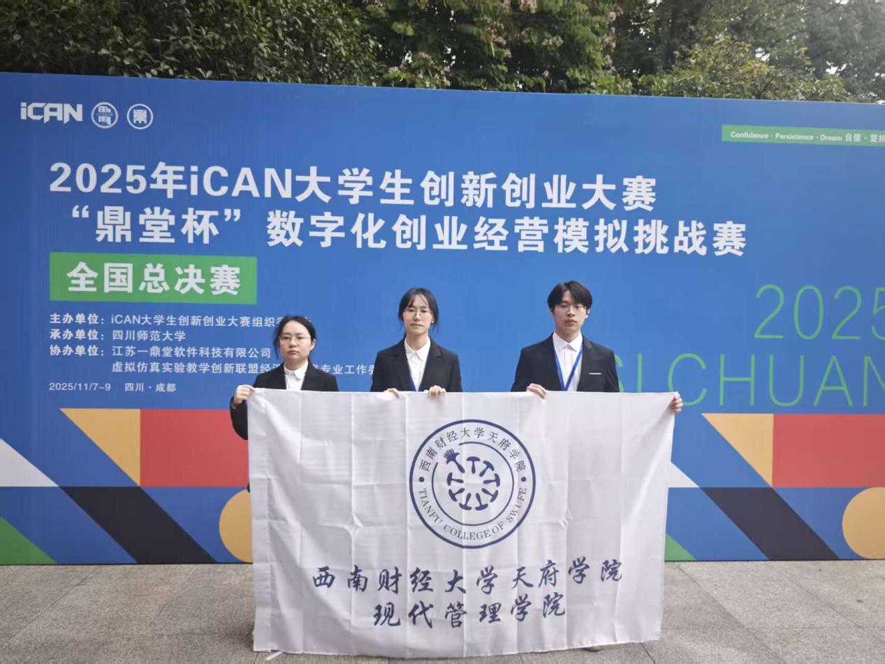 近日,由iCAN大学生创新创业大赛组委会主办,四川师范大学承办,江苏一鼎堂软件科技有限公司等协办的2025年iCAN大学生创新创业大赛“鼎堂杯”数字化创业经营模拟挑战赛全国总决赛落下帷幕。本届大赛共吸引了来自全国379余所高校的20000余名选手参赛。经过层层选拔,最终有137余支队伍进入全国总决赛。304永利集团官网入口高度重视此项赛事,通过校内选拔、专题培训和模拟演练,最终选派6支队伍参加省赛,最终现代管理学院教师张威加、王俐丹指导的“嘎嘎队”宿阳湘玉、黄慧荣和何磊凭借出色的AI智能体策划方案和创新的商业模式,在激烈的竞争中脱颖而出,荣获全国总决赛二等奖以及省级一等奖1项、省级三等奖1项的好成绩。