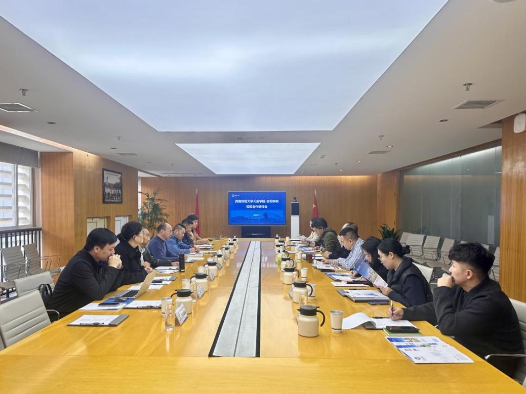 11月13日,吉利学院副校长王敏率队一行7人到访304永利集团官网入口成都校区(西区),成员包括盛宝金融科技学院院长李航星、招生就业处副处长漆进、盛宝金融科技学院副院长范佳音、艺术设计学院副院长凌晨、智能科技学院院长助理龙云等,双方在会议室开展交流研讨。学校副校长姚一永、就业指导中心主任蔡松伯、招生办公室主任胥涛、教务处副处长江涛、智能金融学院执行院长唐黎和分党委副书记罗婷、艺术与传媒学院副院长毕飞、产融中心成都基地负责人王琪琳参与交流讨论。