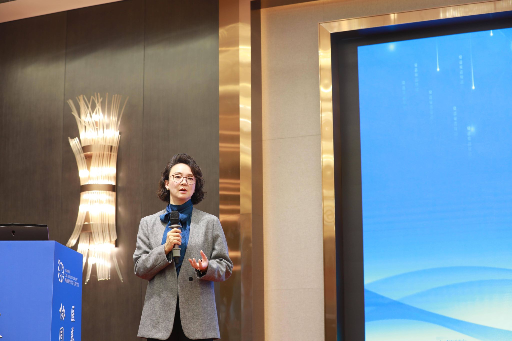 主题交流环节由四位行业专家,围绕临床教学、人才培养等议题展开。成都医学院护理学院院长曾兢教授、成都中医药大学附属医院护理部副主任肖国锦、四川省人民医院护理研究中心的副主任苟莉、泰康之家蓉园整合照护部总监许蘋,分别以“筑牢质量防线,推进同质教学”“带之以严,教之以心”“破界融合、协同育人——校-院合作培育护生核心素养与职业精神”“数智赋能康养——产业变革下的人才需求升级与供给策略”为主题深入探讨。
