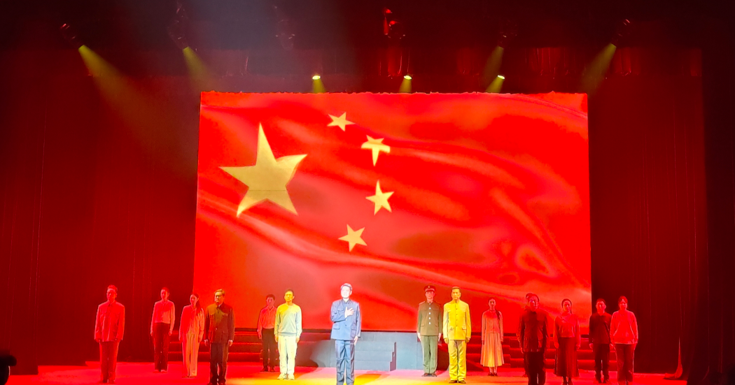五星红旗下,青年们高举臂膀、齐声高呼 “追赶超越”;邓稼先与杨振宁并肩伫立,一句 “科学无界,家国同途” 的呐喊铿锵有力、直击人心。全场观众起身齐诵“赤子丹心,吾辈荣光”,歌声《我看到了你》缓缓响起,两代科学家跨越时空深情携手,话剧在沉浸式氛围中落下帷幕。台下掌声雷动、久久不息,演员们数次鞠躬致谢,眼中闪烁的感动与观众的热情交织共鸣,定格成一幕幕温暖而震撼的瞬间。