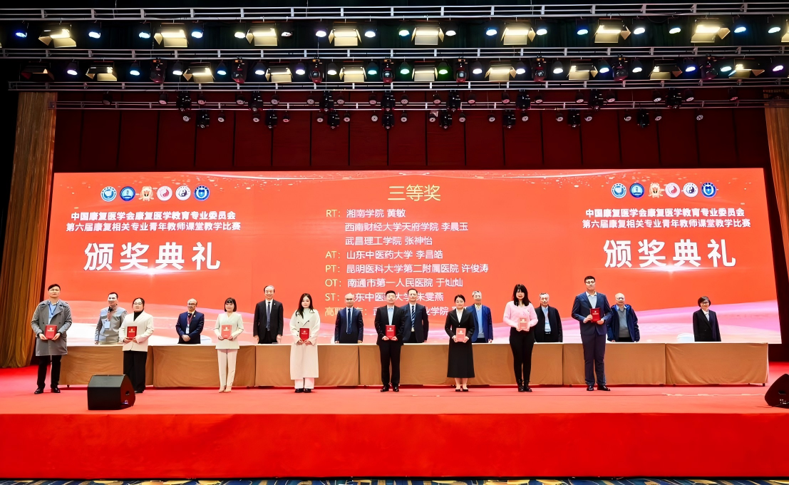 11月20日至23日,由中国康复医学会康复医学教育专业委员会承办的第十届康复教育学术大会暨第六届康复相关专业青年教师课堂教学比赛和康复治疗相关专业学生技能大赛在云南昆明医科大学成功举办。学校康养护理学院康复系副主任杨雅雯带队参赛,最终教师李晨玉荣获第六届康复相关专业青年教师课堂教学比赛康复治疗学组三等奖,学生刘花、鲁晓雨、邱芳荣获学生组第六届康复治疗相关专业学生技能大赛康复治疗学组三等奖。