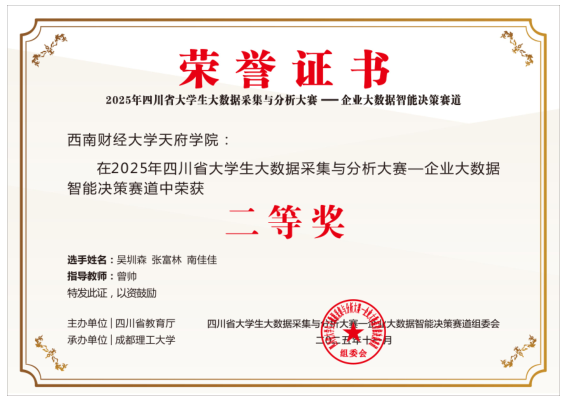 2025年四川省大学生大数据采集与分析大赛—企业大数据智能决策赛道获奖名单 | |||