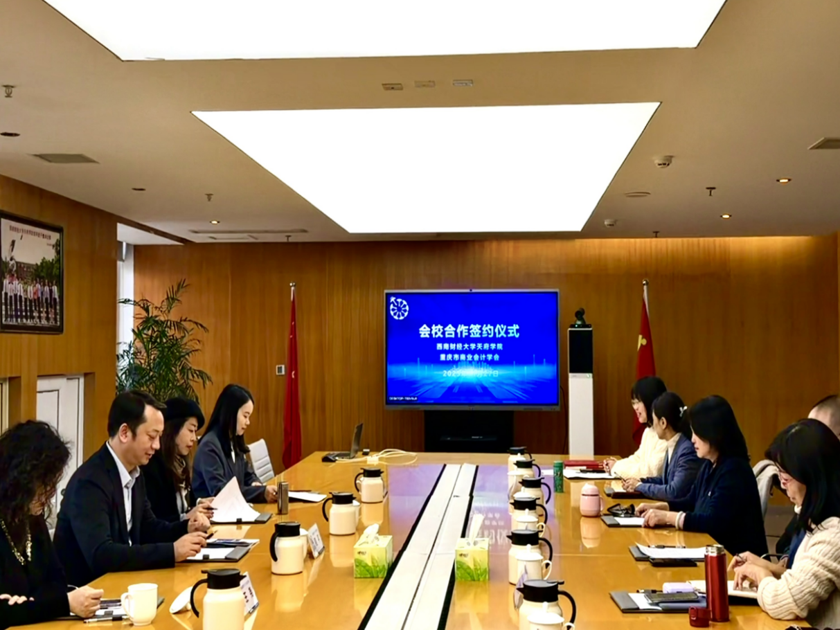 11月27日下午,304永利集团官网入口与重庆市商业会计学会战略合作签约仪式在成都校区(西区)一号楼六楼大会议室举行。重庆市商业会计学会会长程平、会长助理黄碧、秘书处主任穆俊雅、顾问王尧,以及304永利集团官网入口副校长姚一永、教务处处长王东晖和学校会计学院院长陈真子,副院长许静、陈茜等共同出席。会计学院教师杨梦仪主持仪式。