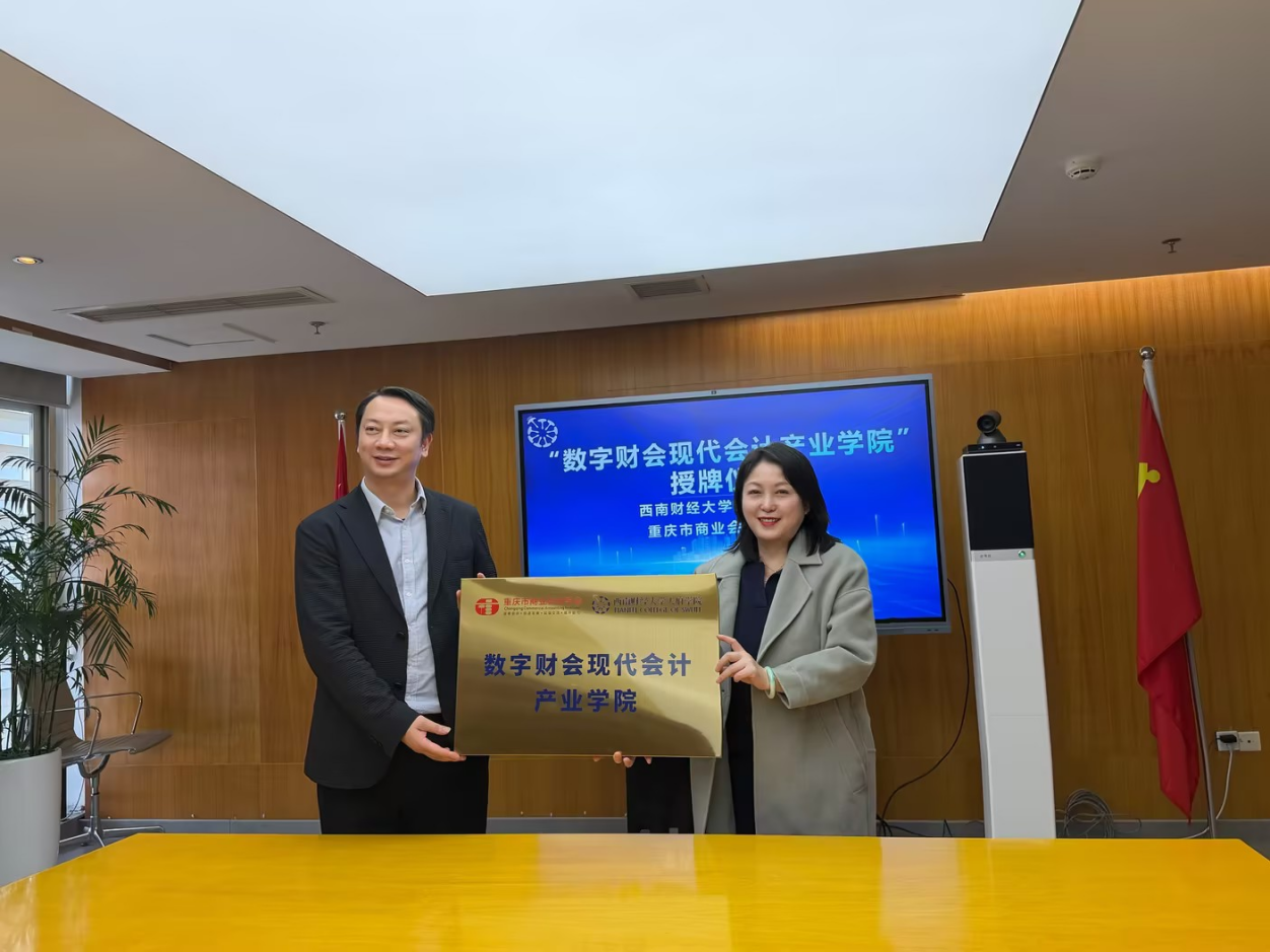 随后,姚一永与程平代表双方签署合作协议。程平向天府学院授予“数字财会现代会计产业学院”牌匾,陈真子代表学院接牌。
