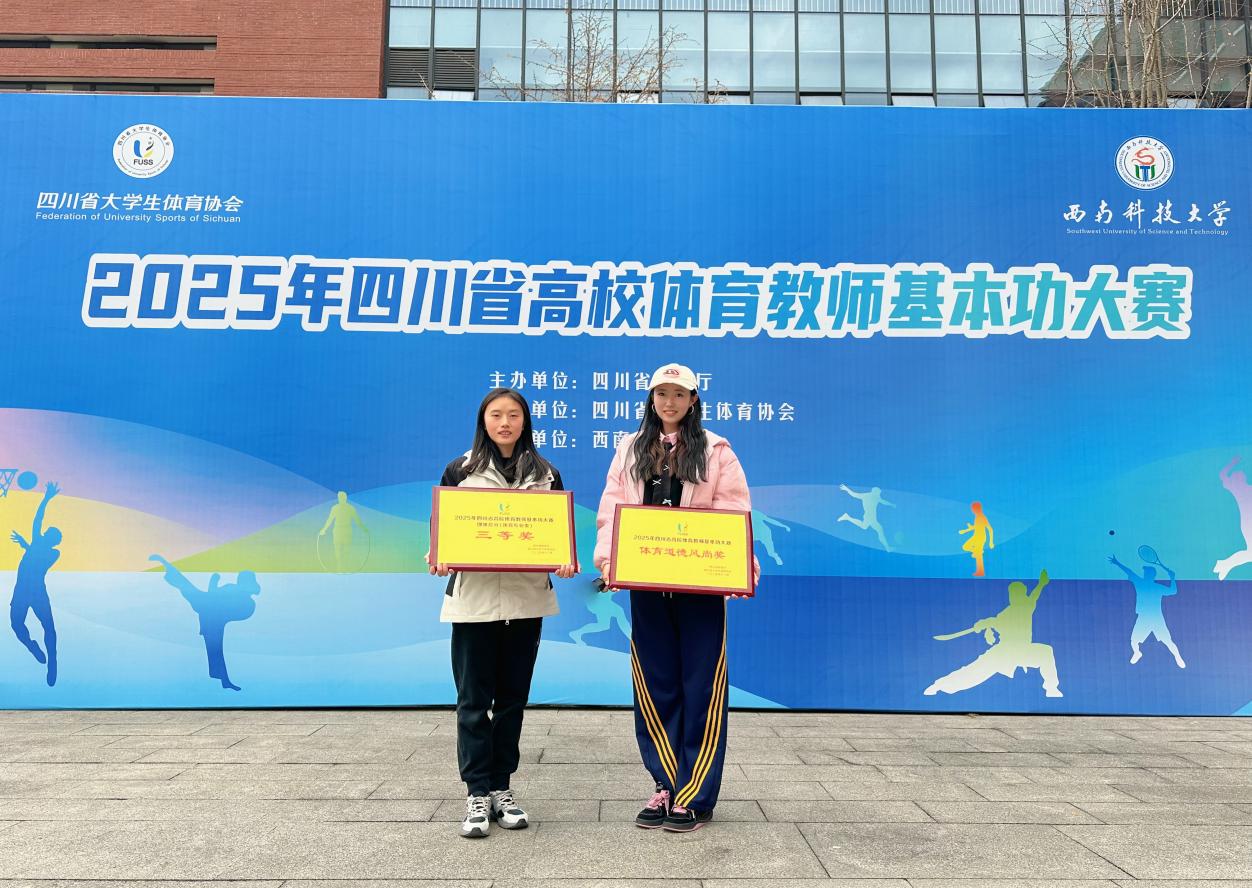 近日,由四川省教育厅主办的2025年四川省高校体育教师基本功大赛在西南科技大学圆满落幕。本次活动面向全省高校体育教师,学校体育学院副院长邹勤等带队参赛,叶春平、程玲、刘宇洋、马丽丽、安娜五位教师代表学校出战。赛事联络人齐文斌全程协调组织,赛前指导教师卢鹏飞、齐文斌为教师团队提供了系统培训与指导,最终参赛教师队伍在大赛中荣获佳绩。
