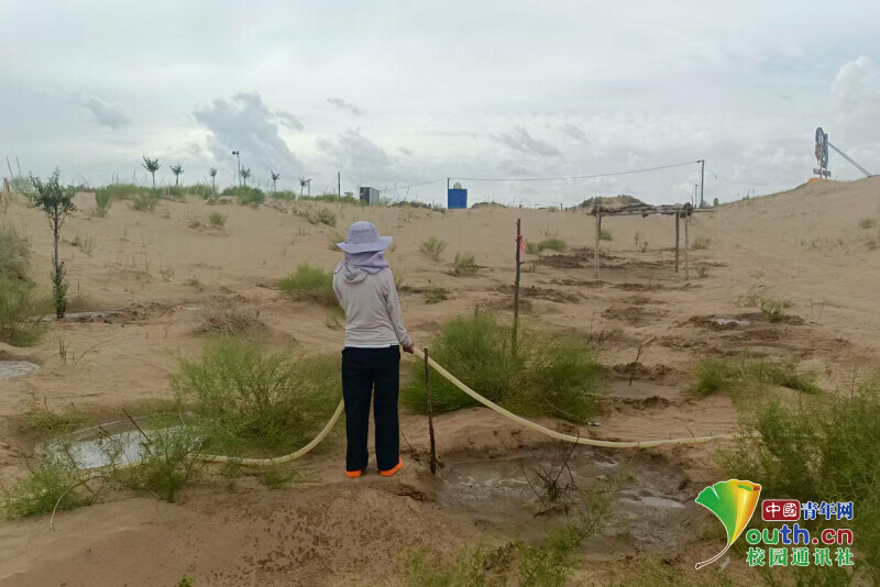 图为团队成员给苦水玫瑰浇水。罗晓月 供图