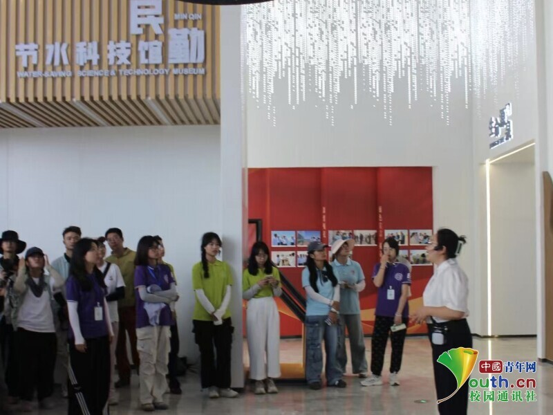 图为团队成员在民勤节水科技馆听讲解人员讲述民勤水源状况。 张慧桢 供图