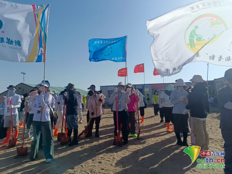 图为“种下一片绿洲”志愿服务队在民勤实践地合影。 张慧桢 供图