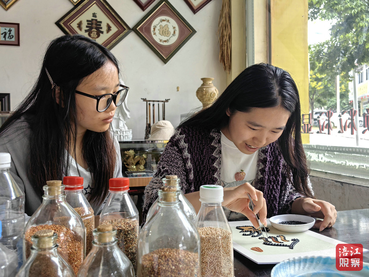 从那以后,只要周末有空,罗彩菊和尹海燕就会从学校转几次公交车到丰谷镇,沉浸在粮艺画的世界里。