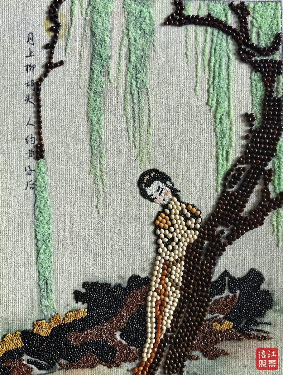 一个多月下来,罗彩菊和尹海燕不仅能准确识别几百类作物的种子,粮艺画制作技艺也显著提升,两人独立制作完成的《欧母画荻》《月上柳梢头》欧阳修文化主题作品,入选“庆祝绵阳建市40周年暨科技城建设25周年”绵阳市第六届民间工艺美术作品展。