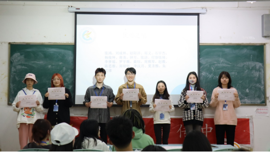 会上还对去年表现优异的同学进行了表彰,既表彰了在校新闻宣传中心踏实工作的成员,也表彰了在“学习强国”等官方媒体发布了作品的学生。宁梦茜宣读了获奖名单,并颁发了奖状。