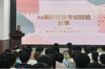随后,马健和毛萍萍针对考研为学弟学妹们分享了考研宝贵经验:一是考研过程时间节点及其注意事项;二是考研择校、初试、复试的经验与体会;三是英语、政治、数学及专业课的学习心得与参考书。同时他们鼓励同学不要随波逐流,要养成良好的学习习惯,坚信“你的潜力远比自己所认为的更大”。