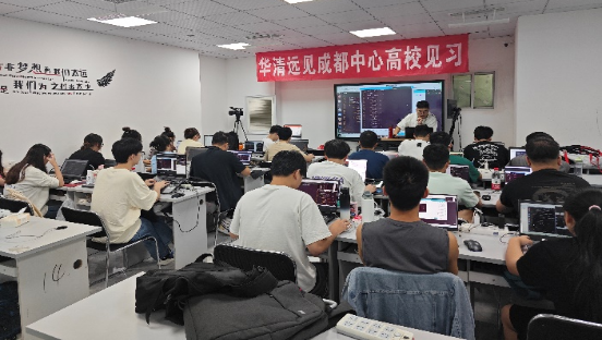 在华清远见公司的悉心安排下,同学们在培训内容、上课方式、住宿餐饮等方面得到了细致周到的安排和照顾。为了丰富同学们的综合实训内容,加强同学们对专业实训的认知和体验,在华清远见基地实训期间,成都中心的老师们还带领同学们参观了位于成都的全国首家沉浸式工业互联网创新中心。