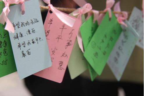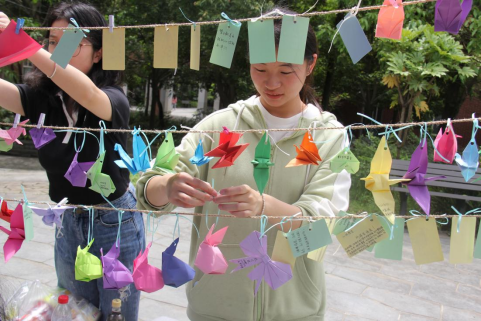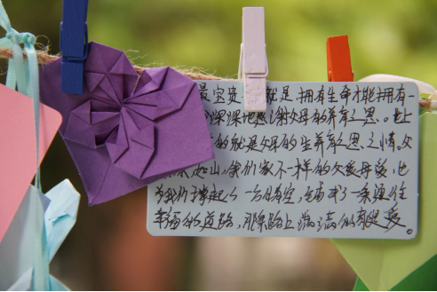 活动中,同学们将彩纸折成自己喜欢的样子,在便签上记录父母让自己感动的瞬间,写下自己想要说的话,为父母送上祝福。同学们积极参加,共写下感恩卡片500余张。活动学生负责人李炼说道:“此次活动给同学们提供了一个对父母表达爱的平台,提醒同学们时刻不忘父母的恩情,希望每个同学都能用自己的实际行动来回报父母的爱和期望。”