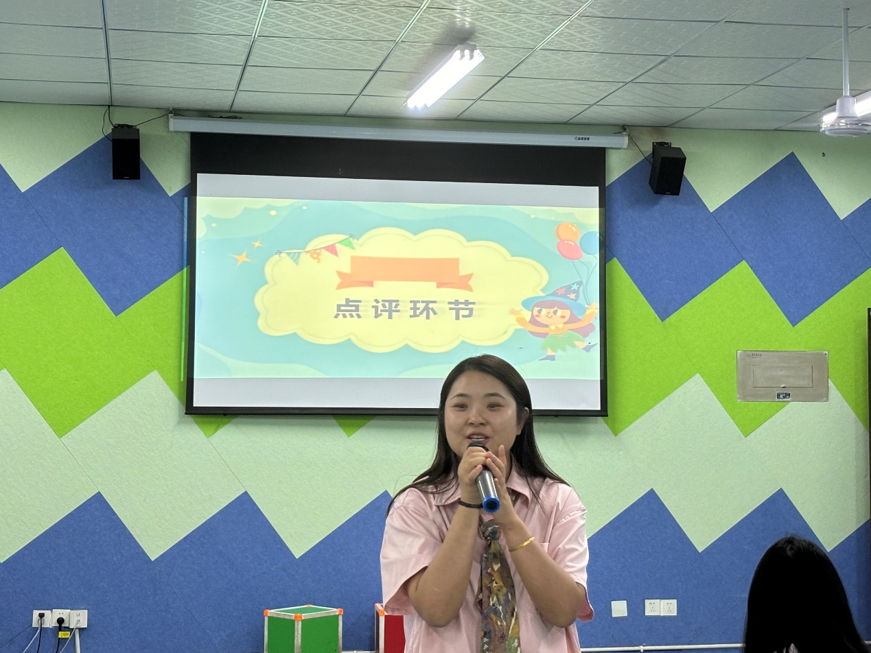 本次活动,同学们纷纷选择了来自童年的歌曲,只为带领大家重回儿时梦乡,回到那充满美好与憧憬的时光。如,文化与教育学院学生宋艳婷团队带来《猪猪侠》歌曲,其热情活泼的唱跳,让同学们仿佛回到童年,坐在电视机前吃着雪糕、无忧无虑的模样;曹玉玲同学带来承载着几代人回忆的歌曲《外婆的澎湖湾》,当旋律响起时,听众们随之而动,仿佛回到童年初听这首歌时的模样。每一组选手歌唱结束后,赵志娜都会对同学们的演唱进行点评,大家都细心聆听,虚心接受意见,也让后面的选手更加放松。