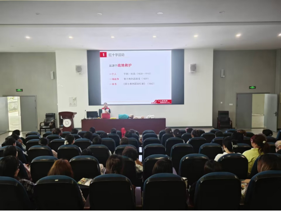 冼义林向同学们介绍红十字运动起源于战地救护