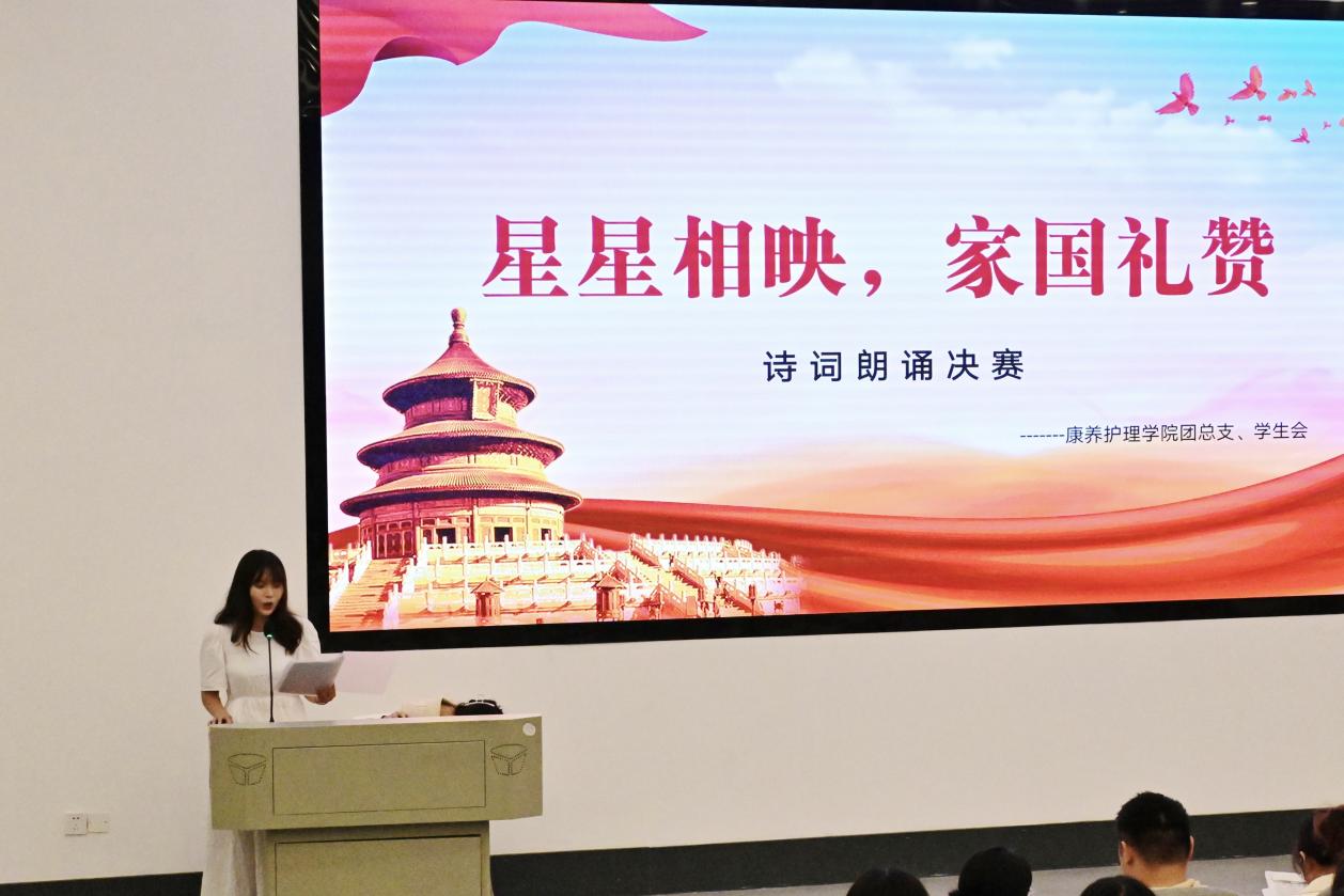 以青春之名,诵读清澈挚爱;以心中红星,抒发爱国情愫。10月12日晚,康养护理学院团总支、学生会勤工助学中心于德阳校区B101教室举办“星星相映,家国礼赞”诗词朗诵活动决赛。辅导员代表贾林、马其霞、黄珈、曾世巧、张晓素担任决赛评委,学生肖慈惠担任主持人。