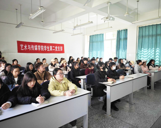 3月11日中午,艺术与传媒学院学生第二党支部在成都校区(东区)教学楼330教室,开展了2024年春季学期第一次全体会议暨新闻宣传培训分享。活动邀请到学院融媒体中心副主任王晶作主题分享,学院学生第二党支部书记苟明娇和宣传委员袁海月,学院学生第一党支部宣传委员沈永凤及学院学生宣传骨干力量参与本次培训活动。