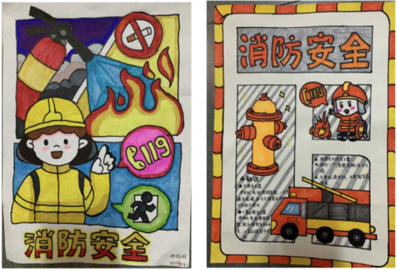 同学们积极参与此次活动,他们在手抄报上运用鲜艳的色彩和生动的图文表达了对消防安全的认识。其中陈国莲同学绘出了消防员高大挺拔的身姿,头戴防尘罩,身穿隔热服,形象地展示了他们是大火中的“逆行者”;林桔羽和罗雯琦同学在手抄报中普及了消防安全知识,包括公共场所禁止吸烟、正确使用灭火器以及遇到火灾时拨打119等重要信息,引导同学们牢记相关规定及自救知识。