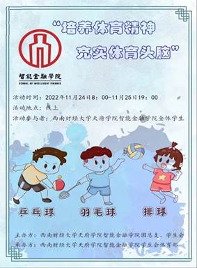 11月24日至11月25日,智能金融学院学生会体育部于线上举办了“培养体育精神,充实体育头脑”体育知识竞赛答题活动,旨在鼓励大学生德智体美劳全面发展,引导同学们关注体育增强团队的合作精神。正所谓“强健其体魄,野蛮其精神”,通过此次“培养体育精神,充实体育头脑”体育知识竞赛答题活动,更好地促进金融学子将体育文化的性质、目的和精神等丰富的内涵转化为实际行动,充分发扬顽强拼搏的体育精神。