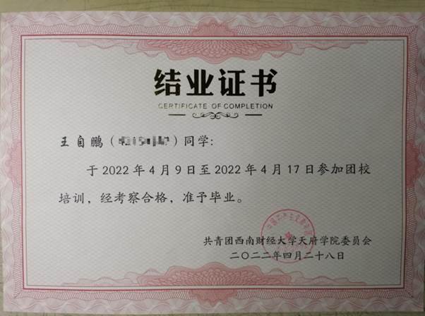 团校培训结业证书