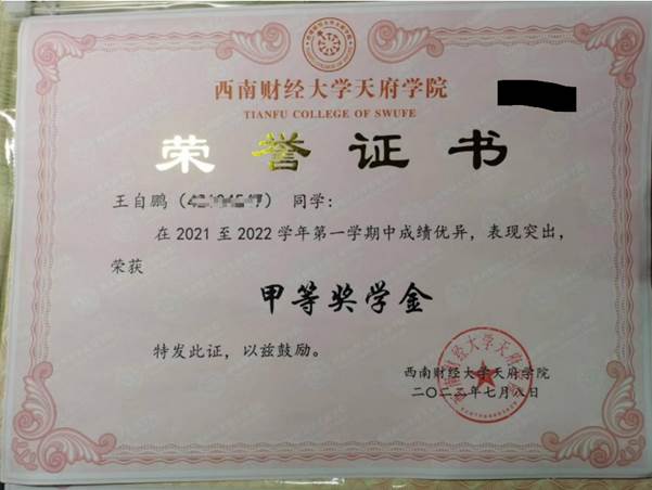 2021-2022-1学期“甲等奖学金”