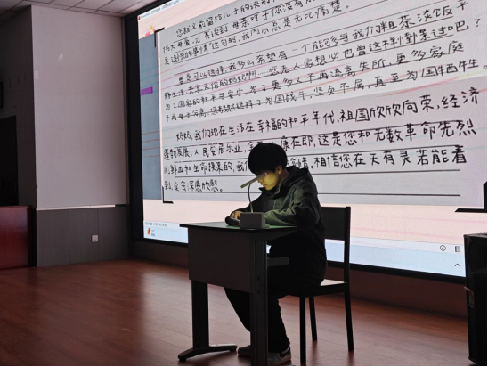 3月23日晚,马克思主义学院“思想道德与法治”课程组(绵阳校区)在实验楼110教室开展“品红色家书悟中国精神”课业展示决赛。此次活动由马克思主义研究学会承办,共6个小组参与决赛,邓海霞、王晓峰、漆俊、皮志勇、杨小丽五位任课老师担任评委,学会成员程诗语担任主持人,线上线下600余名学生参与。