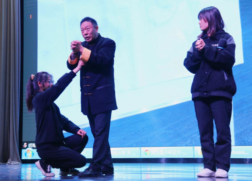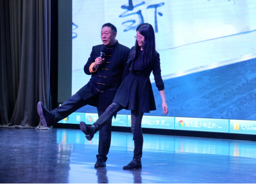 格桑泽仁讲解“得觉”理论在学习生活中的运用。他邀请学生上台表演“自”和“我”的关系,通过演绎不同情景和心境变化,阐述“自”和“我”应该如何达成一致,教会同学们积极思考,唤醒自我大脑中潜能,不断努力成为自己期待的样子。