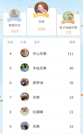 本次活动以线上形式开展,参赛人员线上报名后将自己的创意风筝作品上传至小程序进行拉票,最后评选出优秀作品并给予奖励。活动期间,参赛人员充分发挥了各自想象力和创造力,一笔一划地将心中的色彩与想象跃然风筝设计稿之上,用双手和智慧为自己的风筝增色添彩,一幅幅以清明节为主题的风筝样稿被创作出来,有彩绘风筝样稿、手工制作样稿、电脑设计样稿等,在寄托金融学子对故人思念的同时,展现了自我的审美与追求,营造了浓厚的传统节日氛围。活动最后,“风筝”同学以3283的高票赢得了第一名,“鲸蝶共生”同学也不甘落后,以2419的票数赢得本次活动的第二名,“电子绘画风筝”同学获得第三名。