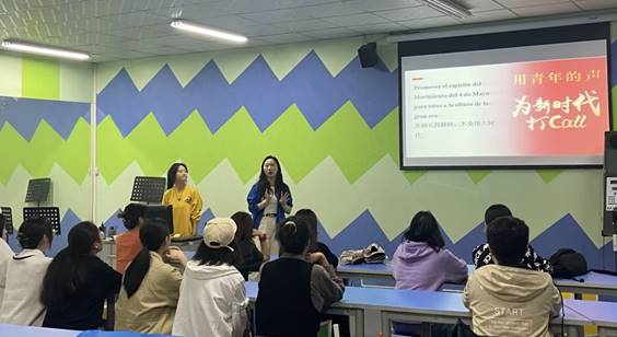 为了丰富校园文化生活,培养同学们的阅读兴趣,展现阅读风采,提高同学们的西班牙语朗读水平,4月13日,由文化与教育学院E-star Club英语社主办的2023春季学期第八周朗读者活动在三教一楼声乐室开展。本次活动邀请了向盈盈老师担任评委嘉宾,共有14名同学参加。