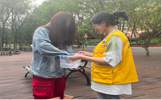 活动于线上报名,同学们踊跃报名积极参与,参与成功的同学在规定时间将物品交至指定的地方,作品收集完后工作人员对盲盒物品进行整理编号并摆放在A2楼栋对面,报名成功人员于宿舍楼前参与盲盒抽取活动,在盲盒中抽取到相应的编号后,就会有相应的工作人员引导同学们按抽取的编号在桌面寻找对应的物品。随着活动的进行,桌上的旧物也越来越多,大家热情很高,很多同学都交换到了自己喜欢的物品。