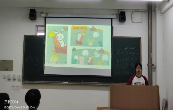 本次活动采取学生自主参与和选择展示内容的形式,参与者在3至5分钟内展示自己的绘本故事。活动中,参赛同学展现了自己的风采,慷慨激昂、自信十足、落落大方,辅以恰当的肢体语言和PPT,加之丰富有趣的故事内容,不时赢得在场学生们的阵阵掌声,现场气氛十分活跃。