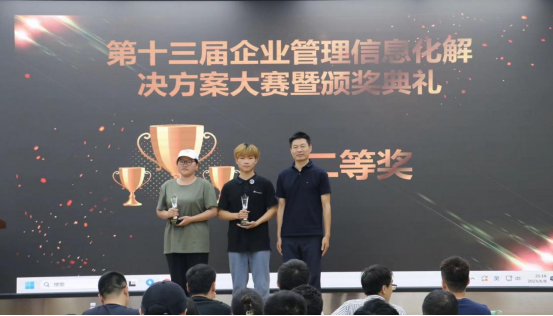 最后,在颁奖环节中,领导们为获得本次大赛一、二、三等奖的团队颁发了奖项。这些团队在比赛中展现了出色的表现和创新的思维,在评委和观赛人员中赢得了高度评价和认可。至此,第十三届企业管理信息化解决方案大赛圆满落幕。