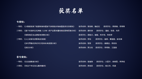 通过激烈角逐,本次比赛共评选出8组获奖作品。专业组一等奖1名,二等奖2名,三等奖3名,非专业组一等奖1名,二等奖1名,具体获奖名单如下: