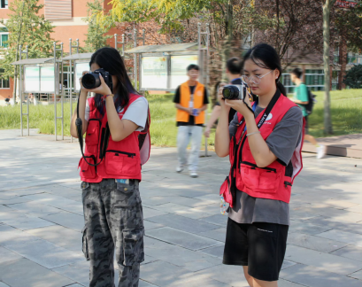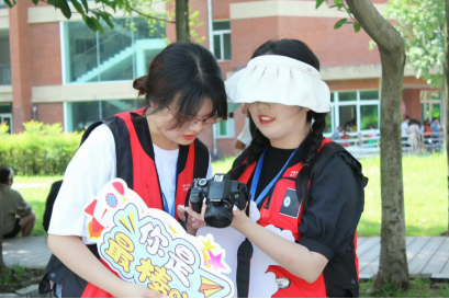 炎热的天气,燃烧着大家的热情与激情。校新闻宣传中心的志愿者们也分布在学校的各个角落。他们有的手拿采访话筒,对新生和家长进行采访;有的手执相机穿梭在人群,定格每个美好瞬间……还有身着“小天”玩偶服的志愿者,在火热的太阳下,他们不顾满头大汗,热烈地欢迎着前来报到的新生们。