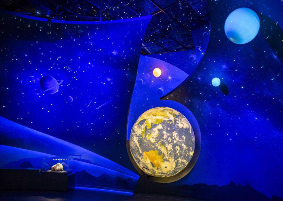 在天文学区域,学生们对宇宙的浩瀚和星座的形成有了更深入的了解。观察了恒星和行星的模型,以及宇宙射线和黑洞的展示,一片浩瀚的银河系直接呈现在眼前头顶还有一片片流星划过,宇宙的浪漫直观展示在学生眼前。