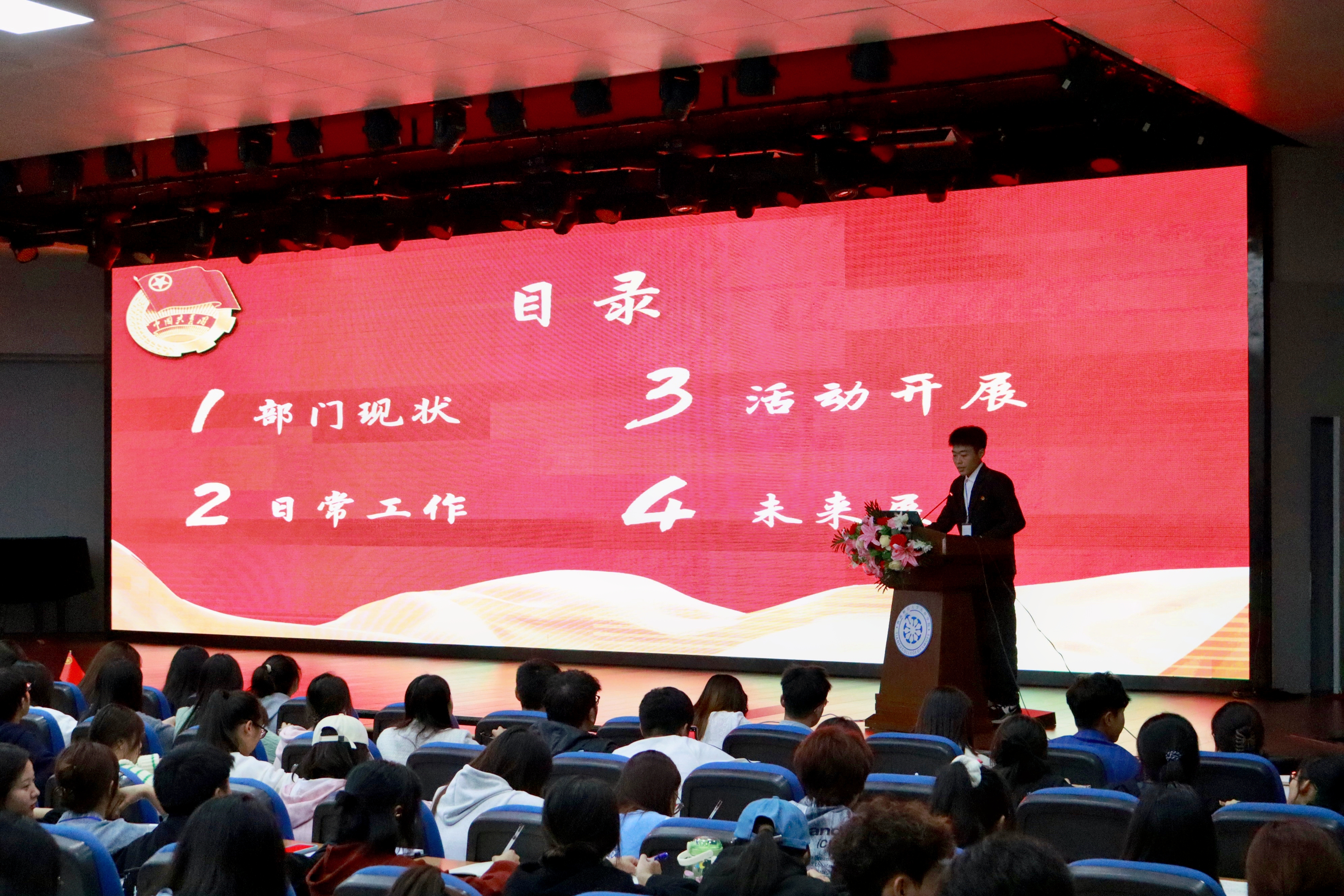 团旗入场后,全体成员齐唱团歌,本次期初大会也就此拉开帷幕。团委、校学生会各部门代表对部门概述、重点工作、特色工作、未来展望依次进行了发言。在此次的工作汇报中,不仅展现了各部门积极向上的工作态度,学习贯彻党的二十大精神和积极学习“十四五”规划的思想觉悟,还展现了天府学子锐意创新、蓬勃向上的朝气。其中“映像天府·共庆祖国华诞”“读书吧”“校级竞标大会”等活动更是深刻诠释了“将有意义的活动做得有意思,将有意思的活动做得有意义”的活动指导思想,也让团学干部对未来活动的开展更有信心,更加期待。