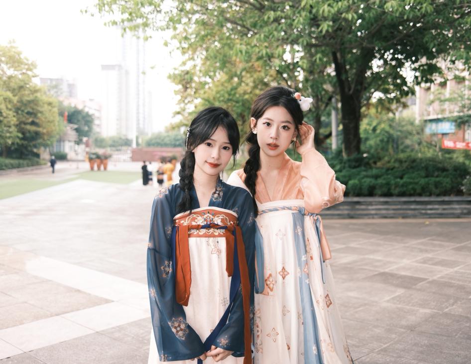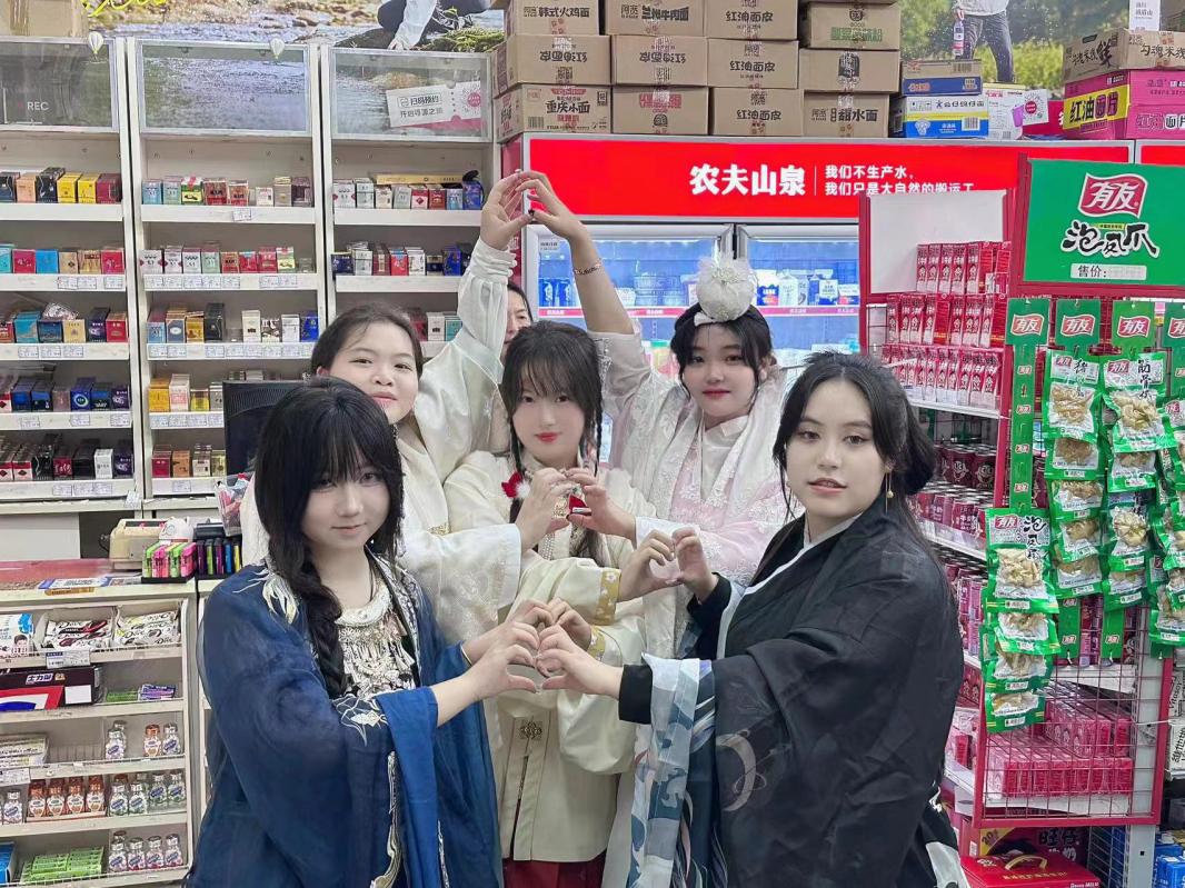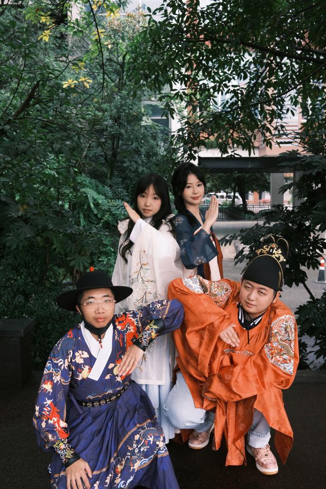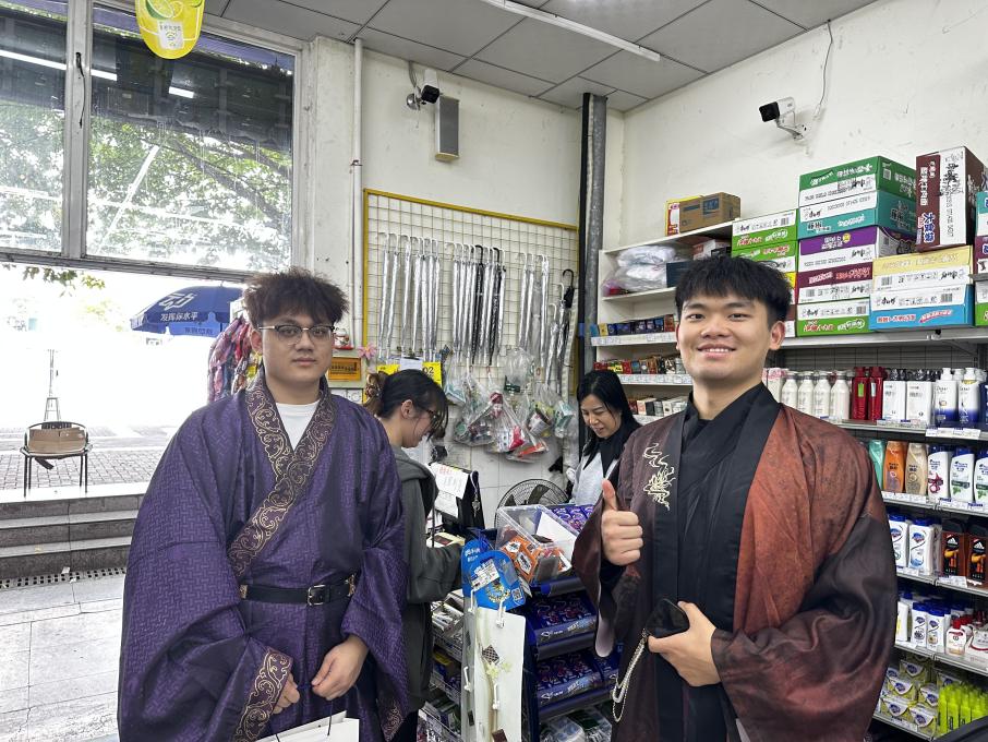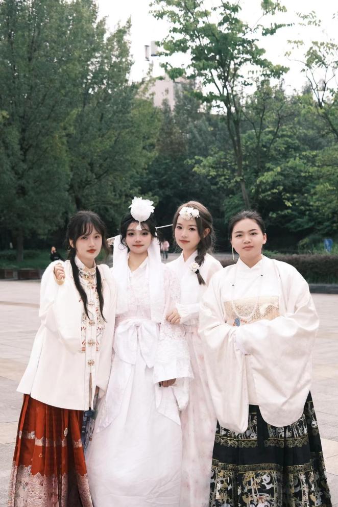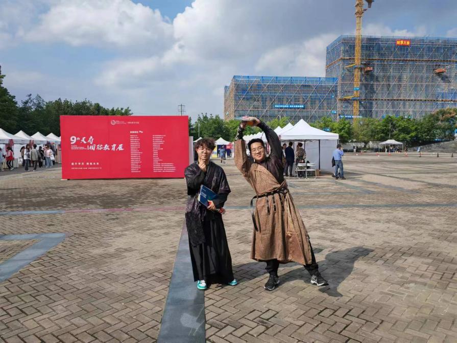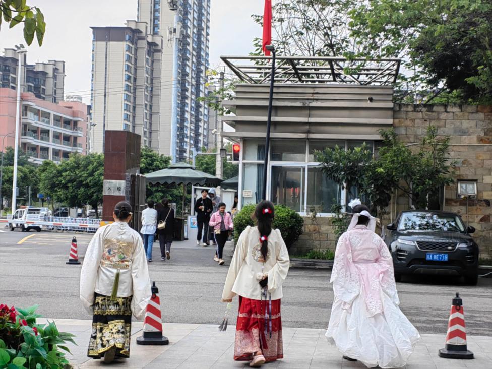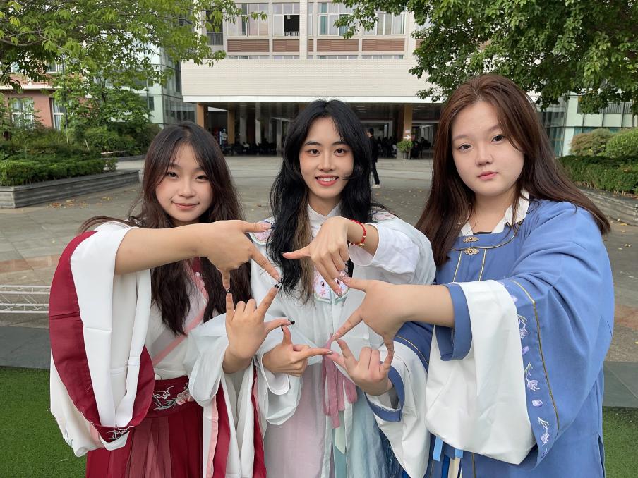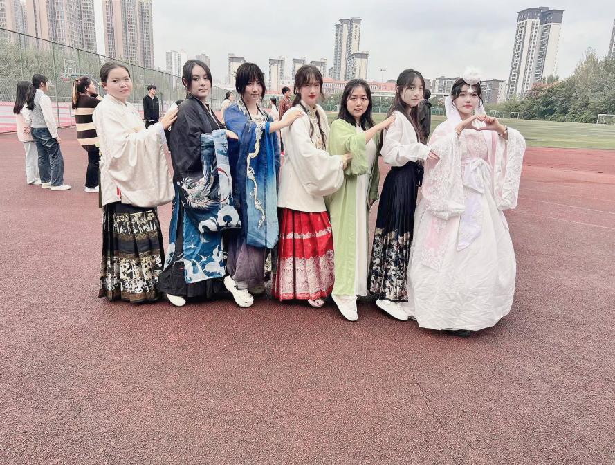 全院师生身着民族服饰进行日常学习和生活,在校园内你能看见“奇异姿势”打卡的“小书童”,在时代广场参与国际教育展的“带刀侍卫”,在食堂购买兰州拉面的“文人雅士”,在操场嬉戏玩耍的“大家闺秀”。